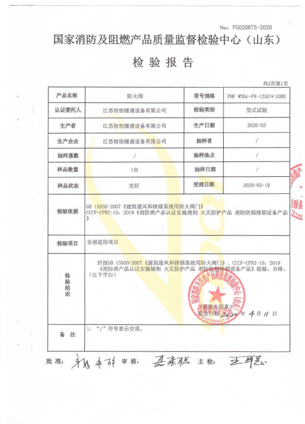 防火閥認(rèn)證證書1250X1000
